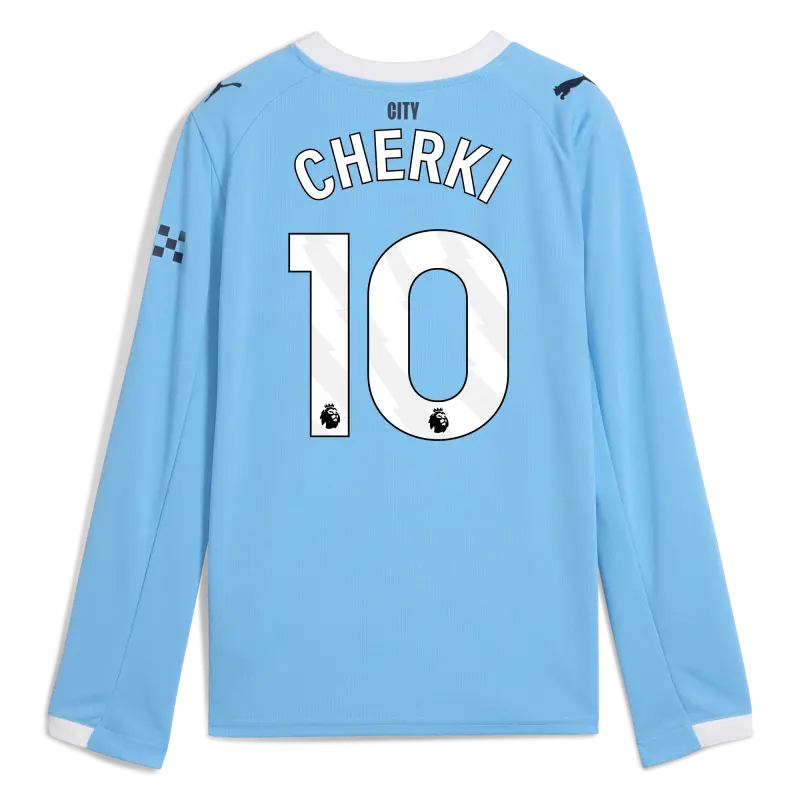 Kids‘ Manchester City Home Jersey 2025/26 Long Sleeve With CHERKI 10 Printing