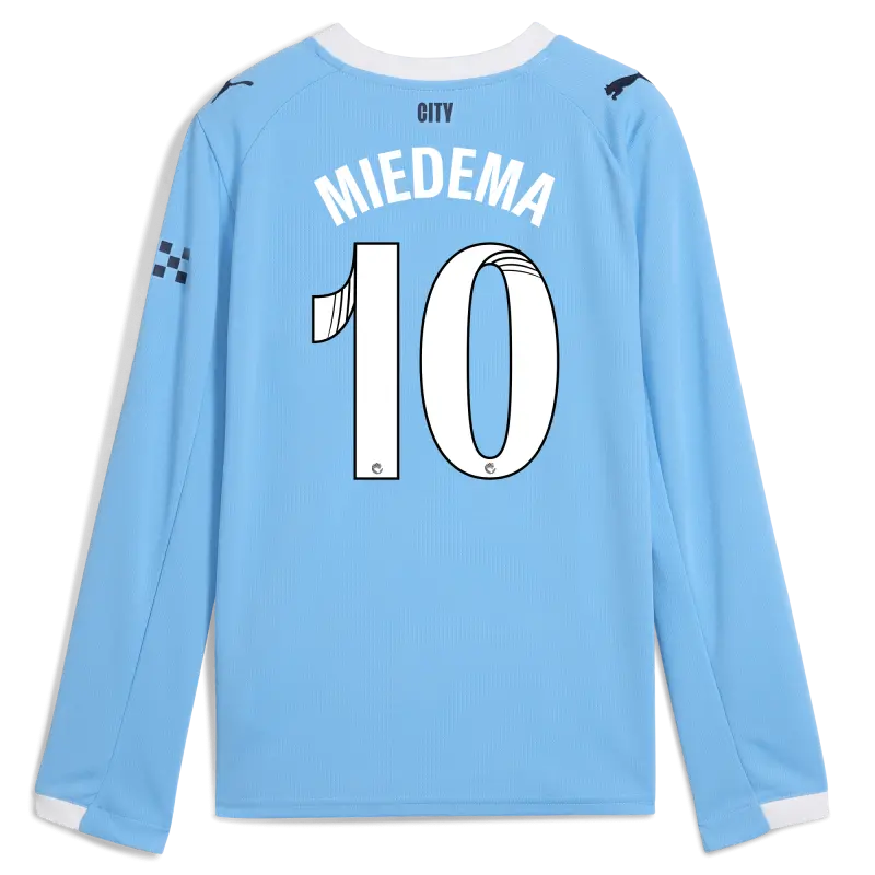 Kinder Manchester City Heimtrikot 2025/26 Langarm Mit MIEDEMA 10 Aufdruck