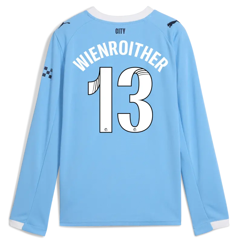Kinder Manchester City Heimtrikot 2025/26 Langarm Mit WIENROITHER 13 Aufdruck