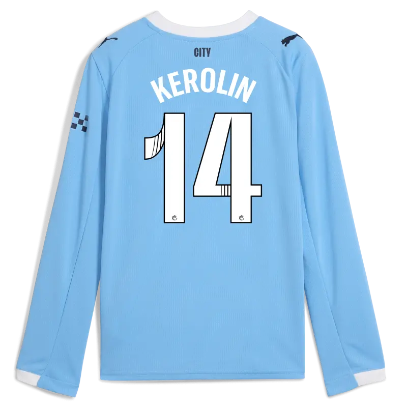Kinder Manchester City Heimtrikot 2025/26 Langarm Mit KEROLIN 14 Aufdruck
