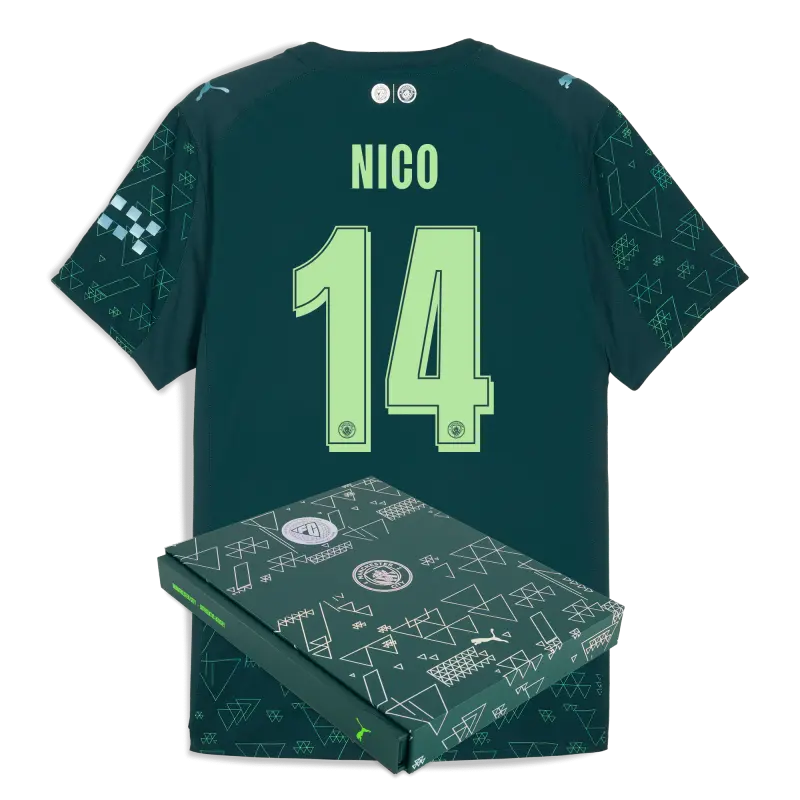Manchester City Authentisch Auswärtstrikot 2025/26 Mit NICO 14 Bedruckung in Geschenkbox
