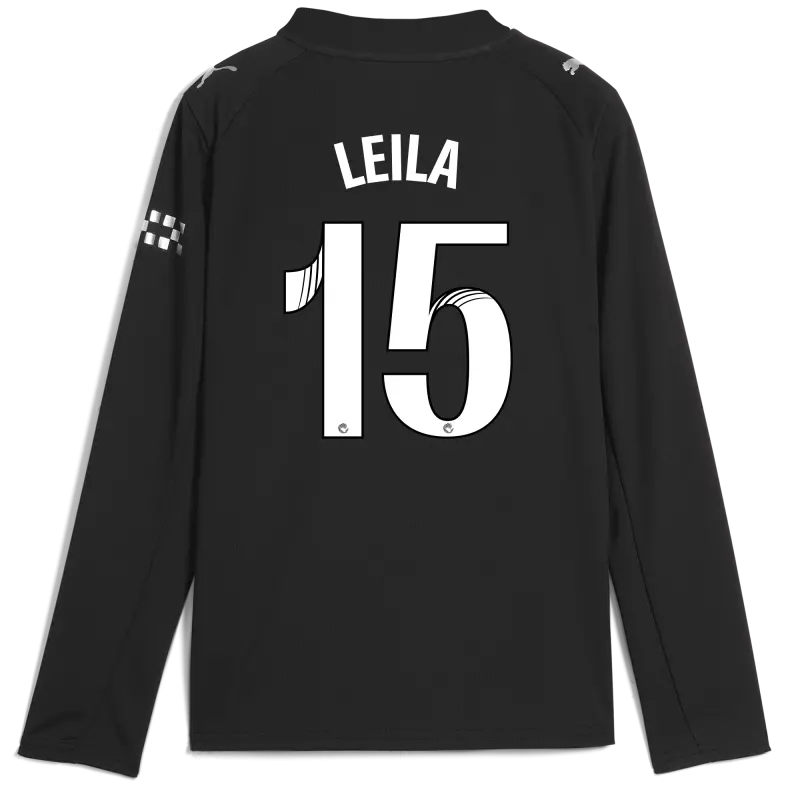 Kids‘ Manchester City Away Jersey 2025/26 Long Sleeve With LEILA 15 Printing