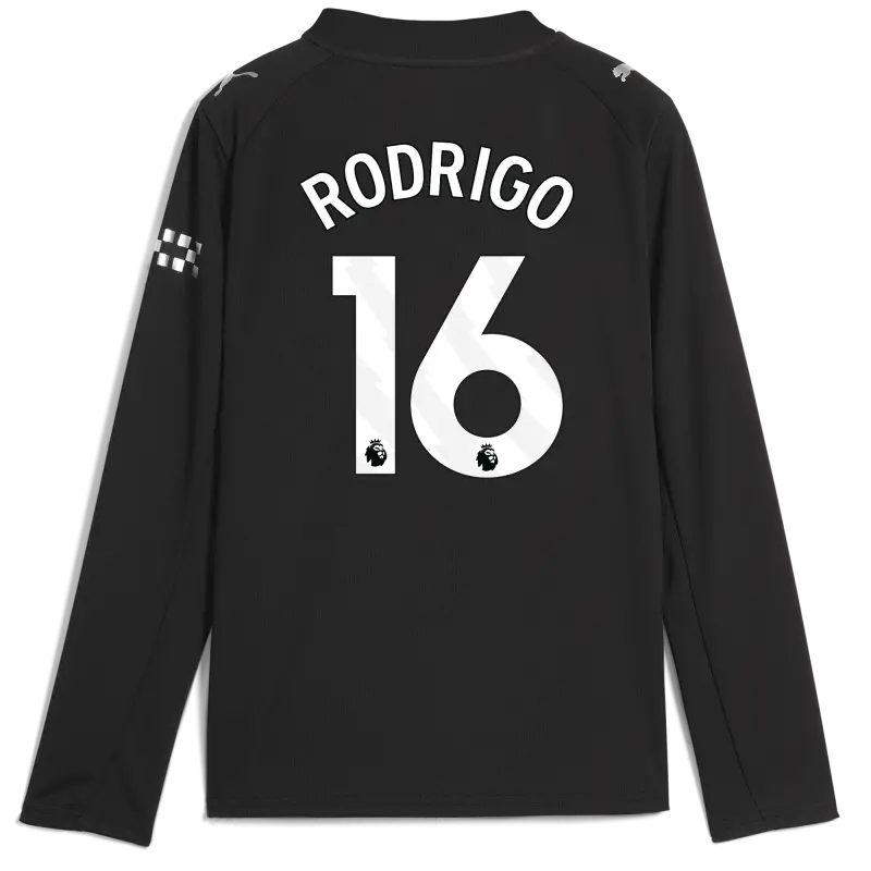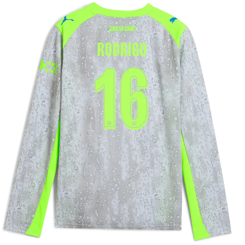 Kinder ManchesterCity Third Trikot 2025/26 Mit langen Ärmeln Mit RODRIGO 16 Druck