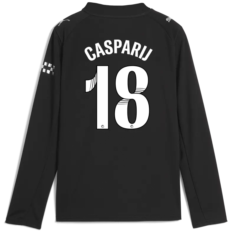 Kinder ManchesterCity Third Trikot 2025/26 Mit langen Ärmeln Mit CASPARIJ 18 Druck