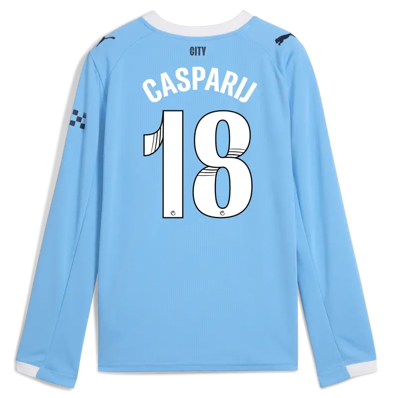 Kinder Manchester City Heimtrikot 2025/26 Langarm Mit CASPARIJ 18 Aufdruck