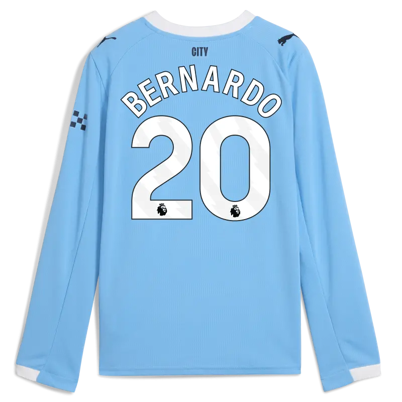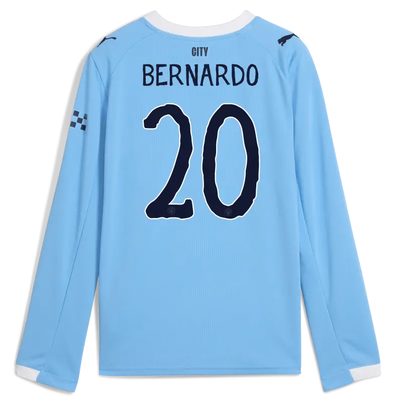 Kinder Manchester City Heimtrikot 2025/26 Langarm Mit BERNARDO 20 Aufdruck