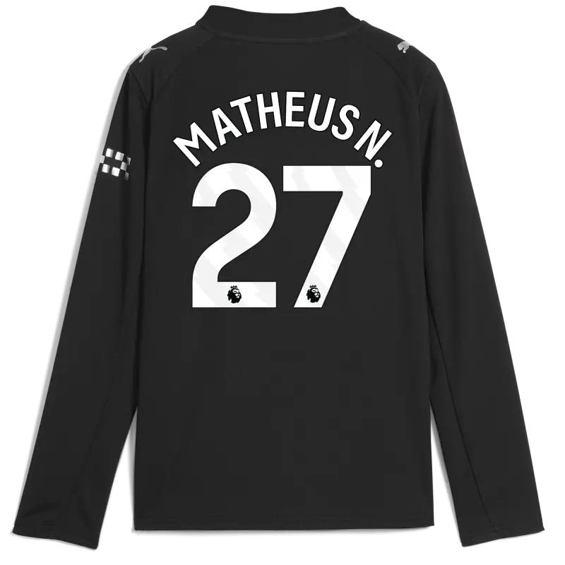 Kinder Manchester City Auswärtstrikot 2025/26 Langarm Mit MATHEUS N. 27 Druck
