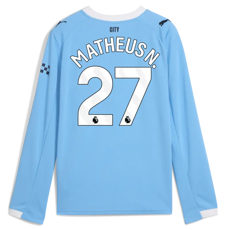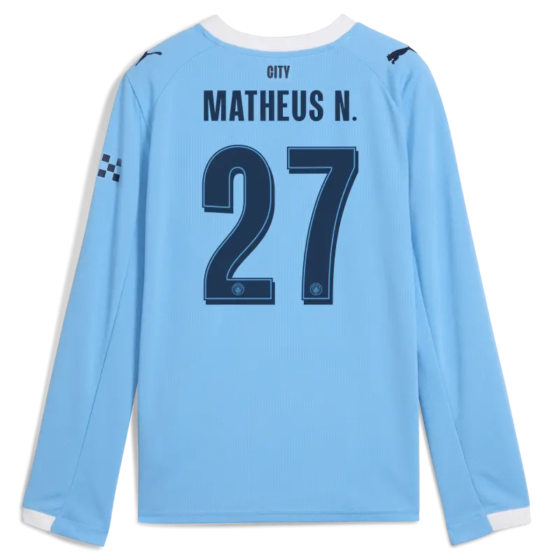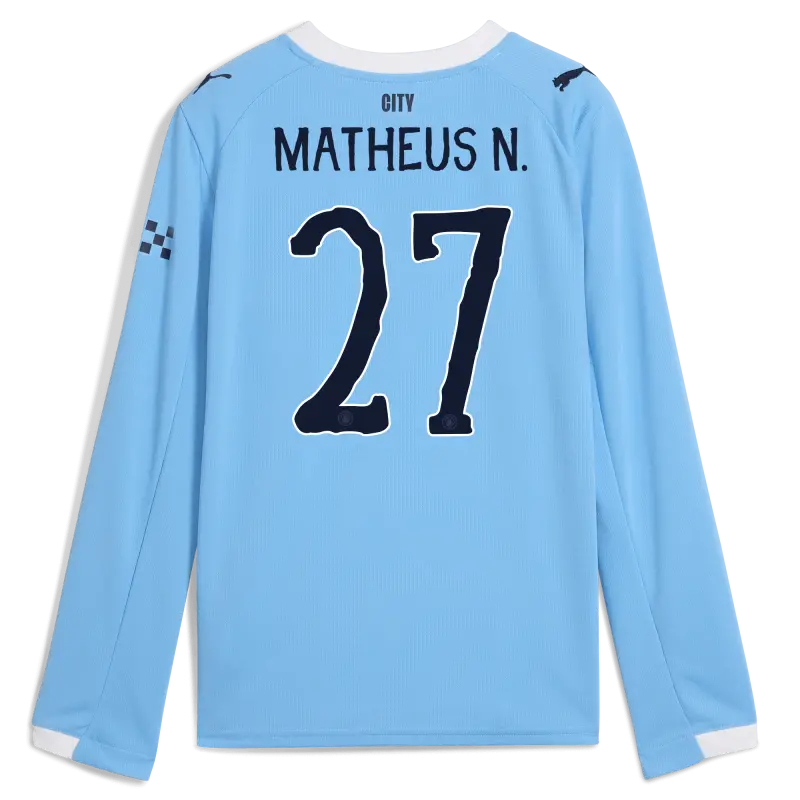 Kinder Manchester City Heimtrikot 2025/26 Langarm Mit MATHEUS N. Aufdruck