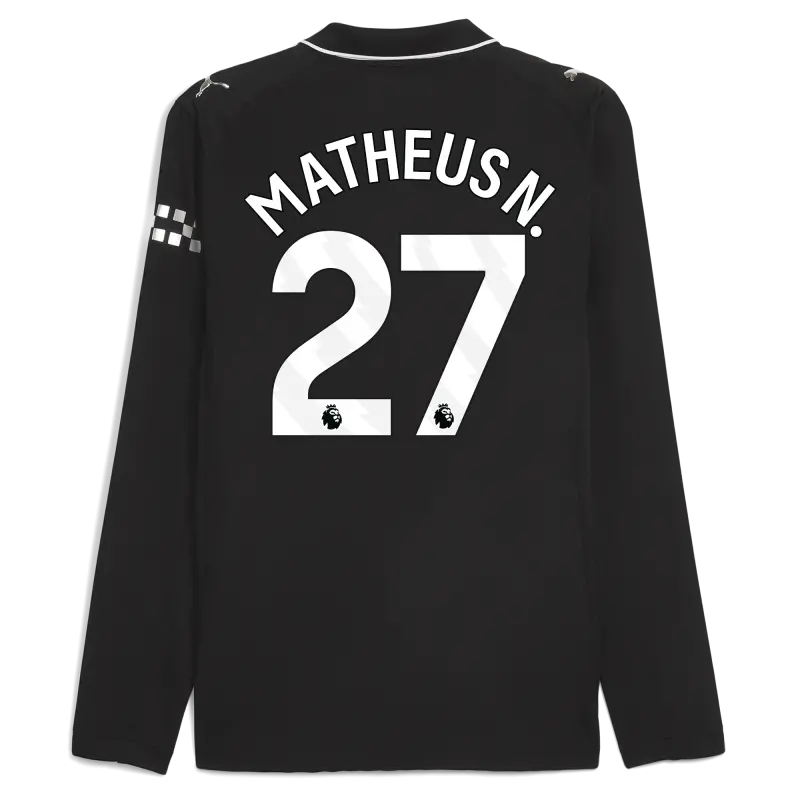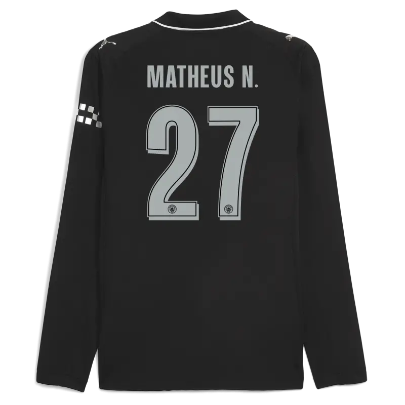 Manchester City Auswärts Authentisches Trikot 2025/26 Langarm Mit MATHEUS N. 27 Druck