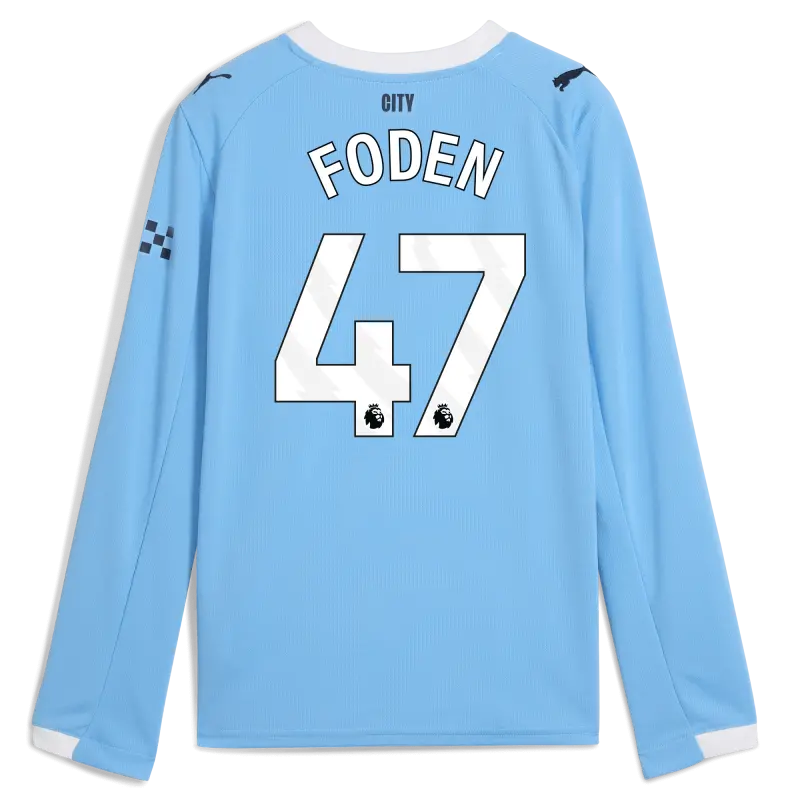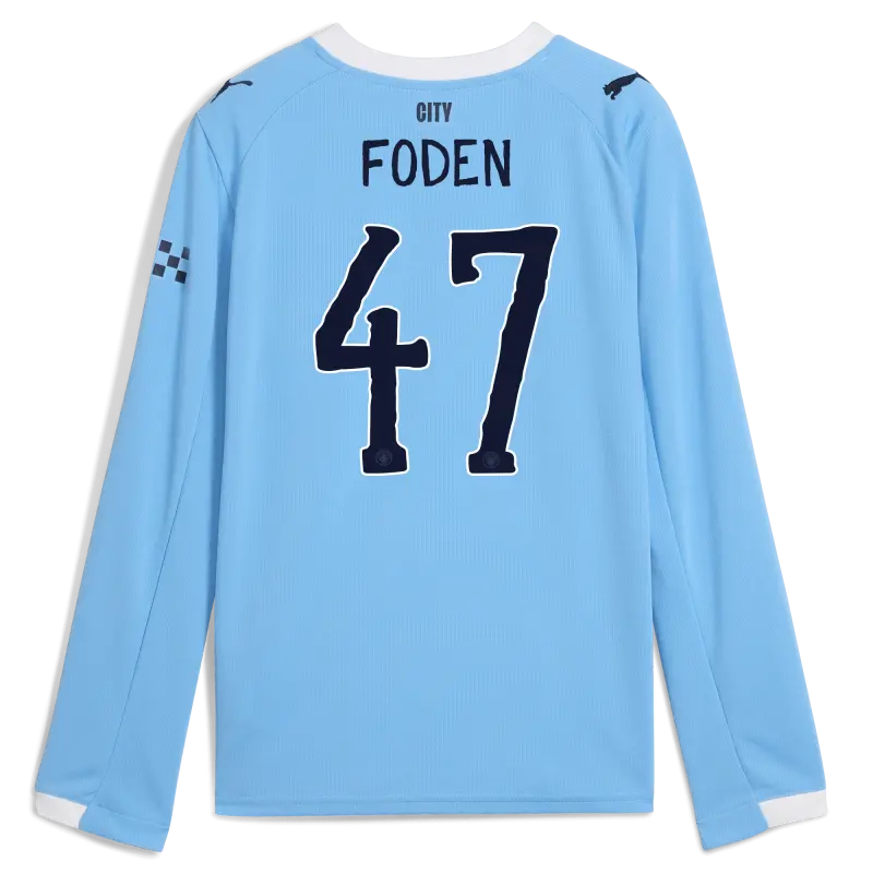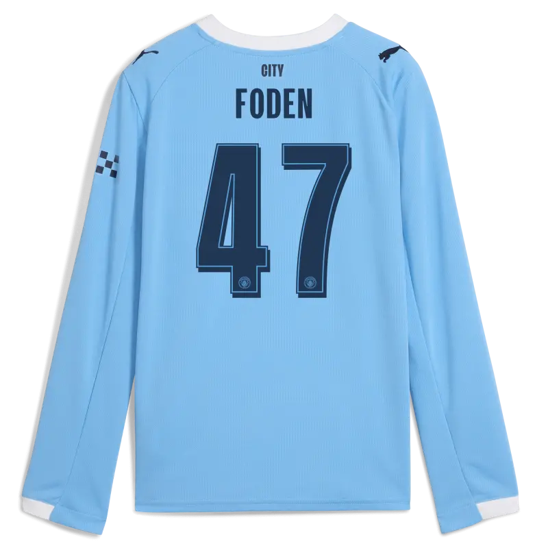 Kinder Manchester City Heimtrikot 2025/26 Langarm Mit FODEN 47 Aufdruck