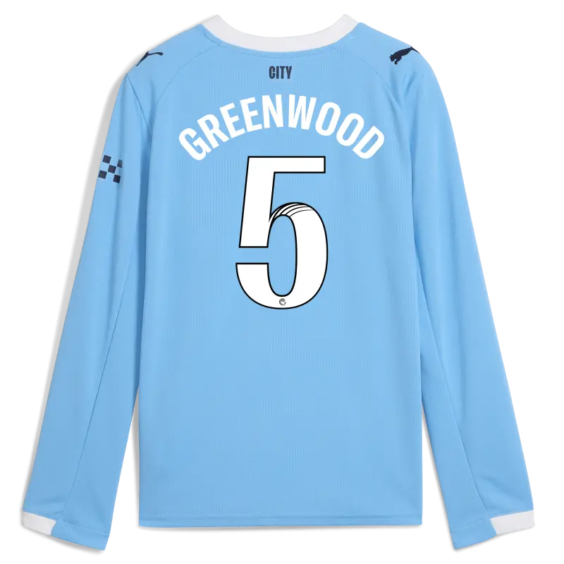 Kinder Manchester City Heimtrikot 2025/26 Langarm Mit GREENWOOD 5 Aufdruck