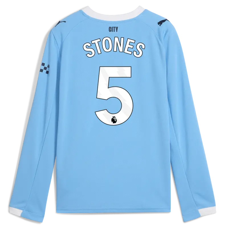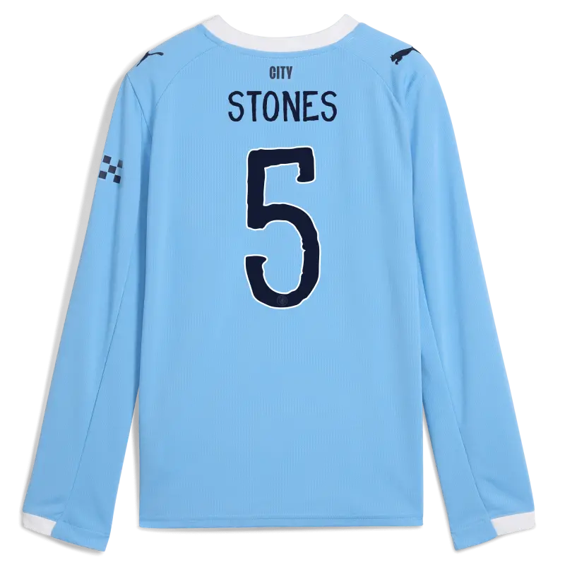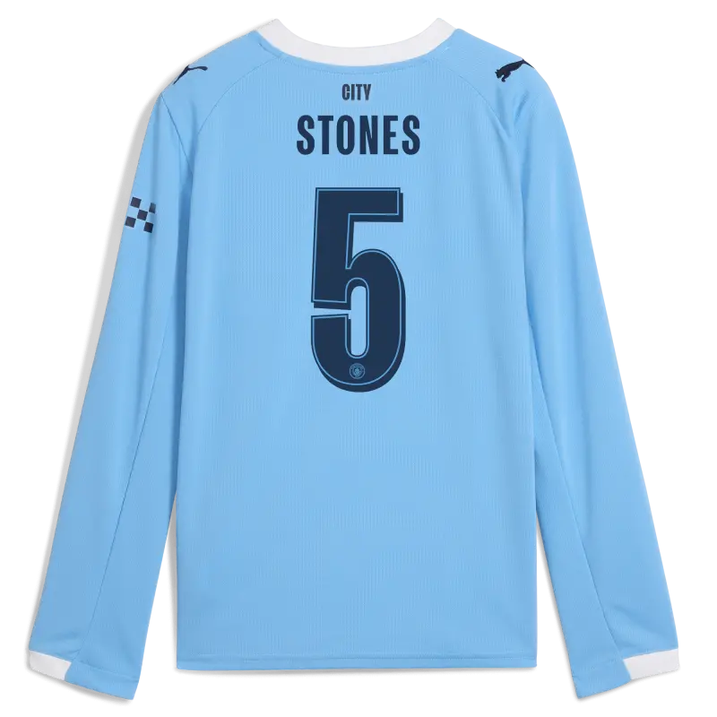 Kinder Manchester City Heimtrikot 2025/26 Langarm Mit STONES 5 Aufdruck
