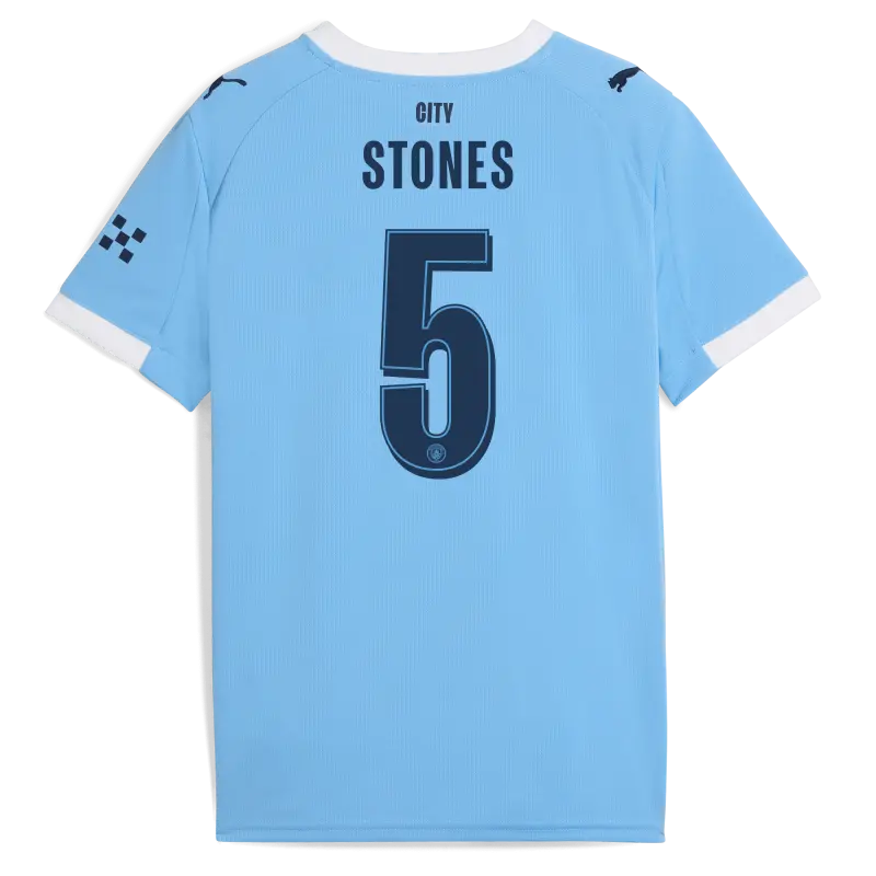 Kinder Manchester City Heimtrikot 2025/26 Mit STONES 5 Aufdruck