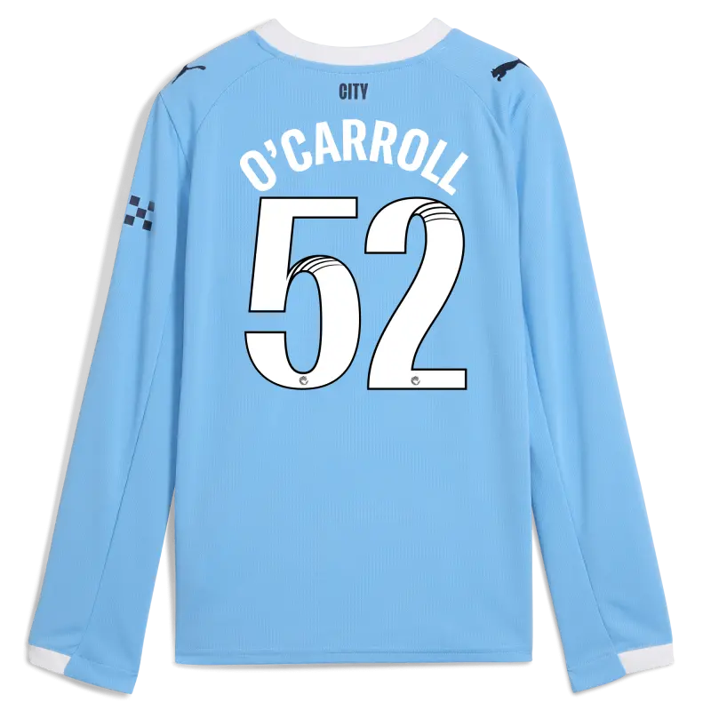 Kinder Manchester City Heimtrikot 2025/26 Langarm Mit O’CARROLL 52 Aufdruck