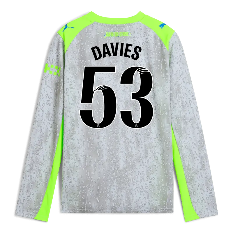 Kinder ManchesterCity Third Trikot 2025/26 Mit langen Ärmeln Mit DAVIES 53 Druck