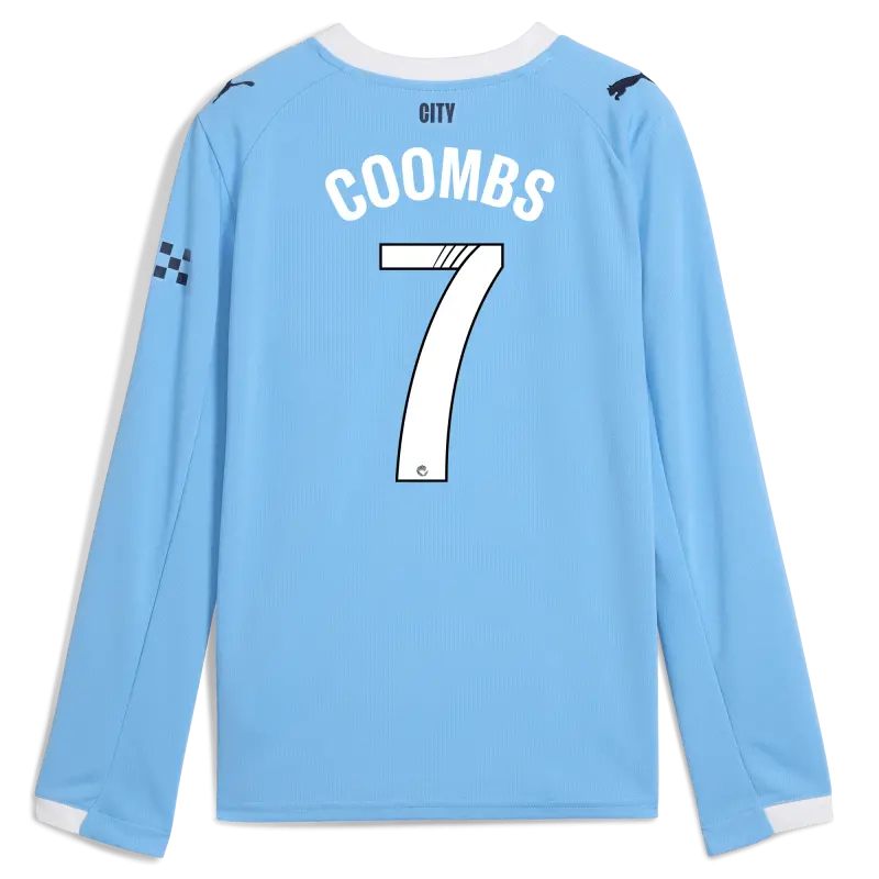 Kinder Manchester City Heimtrikot 2025/26 Langarm Mit COOMBS 7 Aufdruck