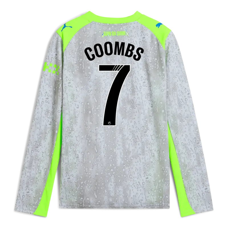 Kinder ManchesterCity Third Trikot 2025/26 Mit langen Ärmeln Mit COOMBS 7 Druck