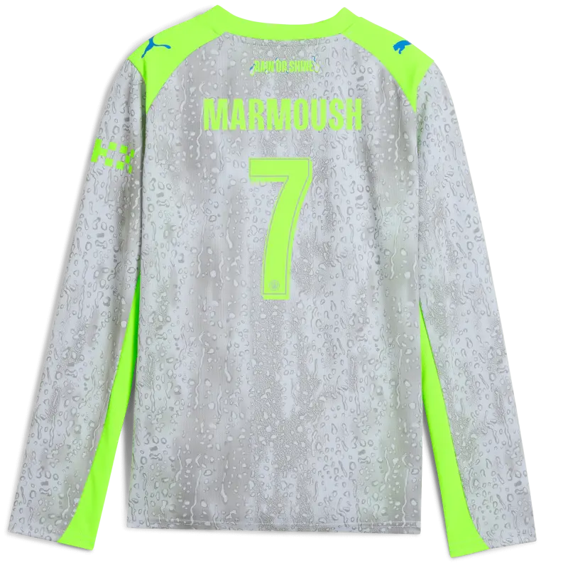 Kinder ManchesterCity Third Trikot 2025/26 Mit langen Ärmeln Mit MARMOUSH 7 Druck