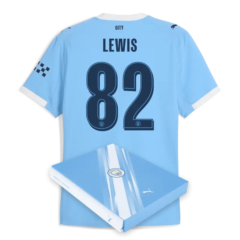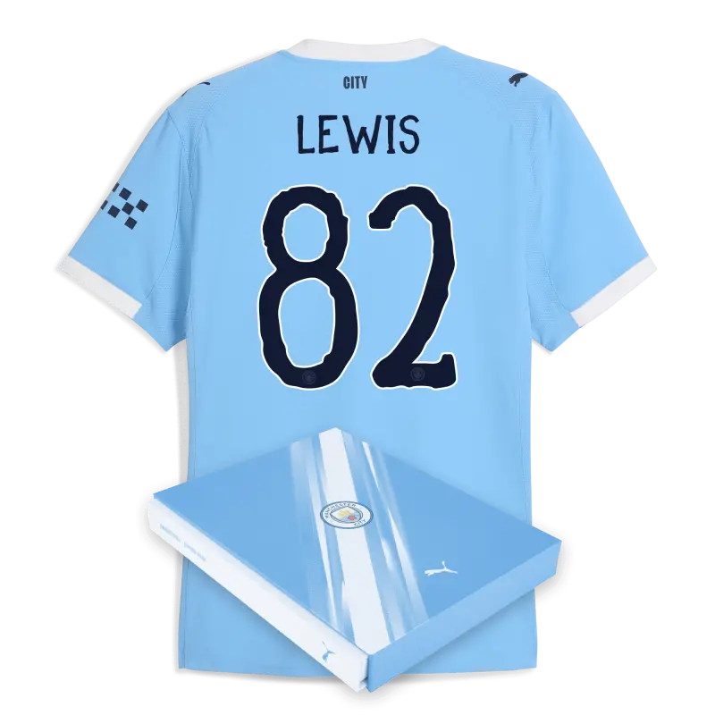 Manchester City Authentic Heimtrikot 2025/26 Mit LEWIS 82 Aufdruck in Geschenkbox
