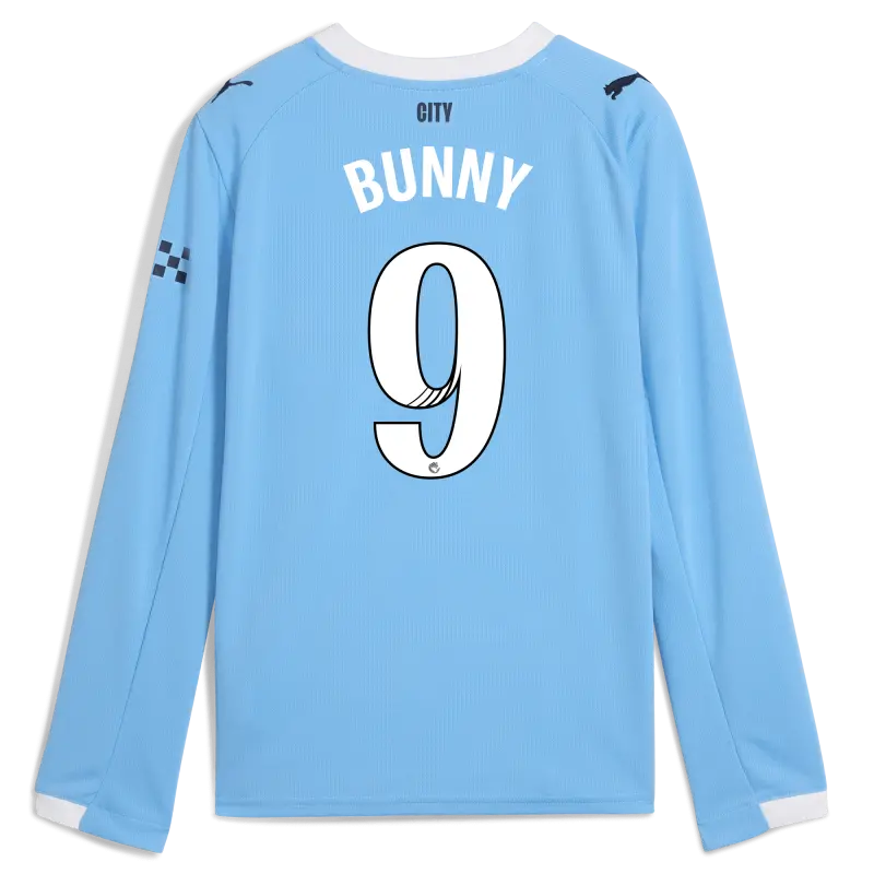 Kinder Manchester City Heimtrikot 2025/26 Langarm Mit BUNNY 9 Aufdruck