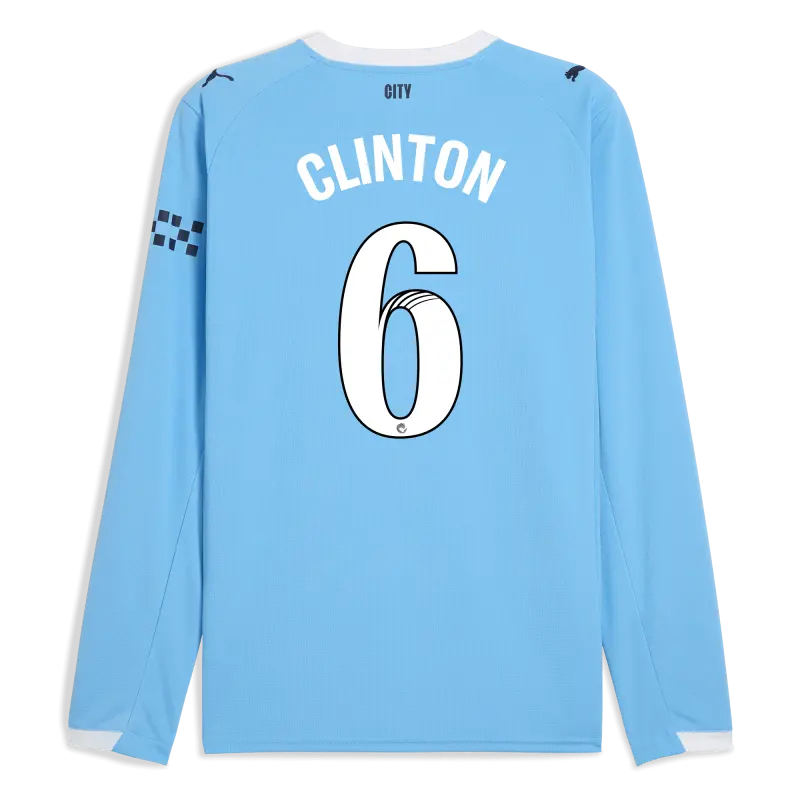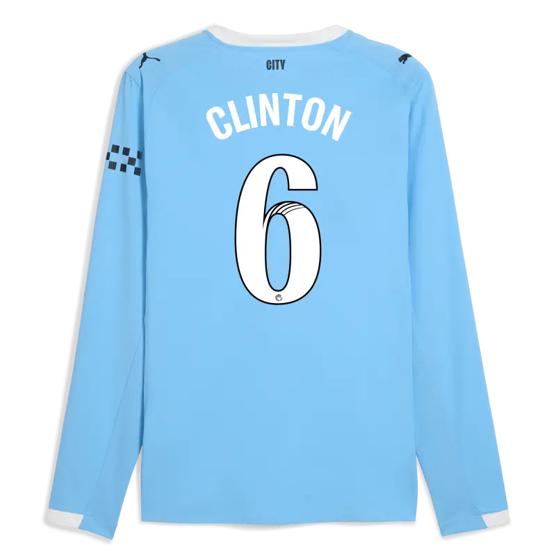 Manchester City Home Jersey 2025/26 Long Sleeve With CLINTON 6 Printing