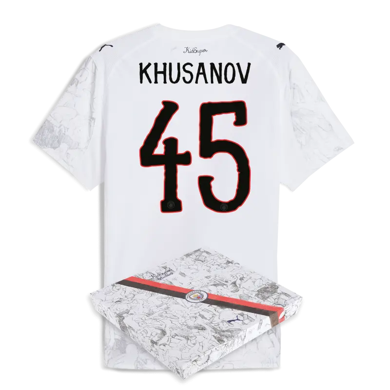 Manchester City KidSuper Authentic Trikot 2025/26 Mit KHUSANOV 45 Bedruckung in Geschenkbox