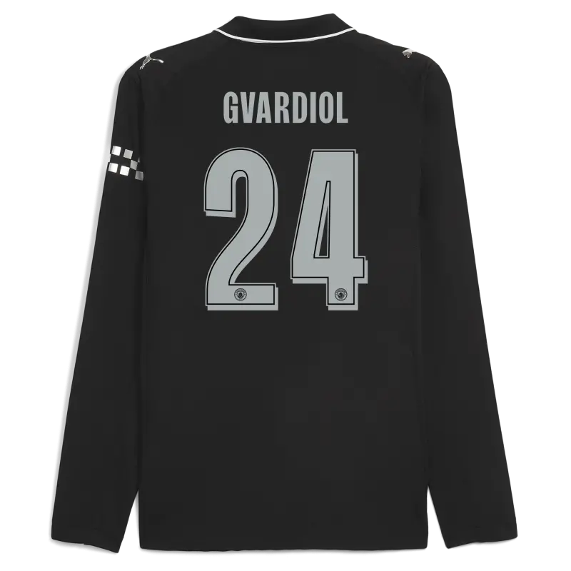 Manchester City Auswärts Authentisches Trikot 2025/26 Langarm Mit GVARDIOL 24 Druck