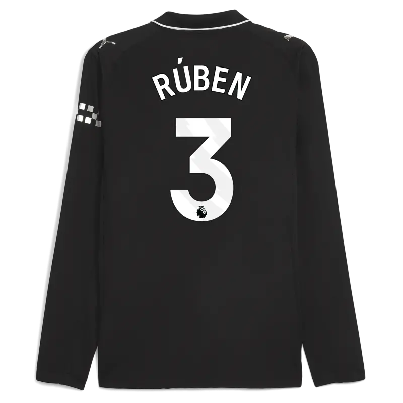 Manchester City Auswärts Authentisches Trikot 2025/26 Langarm Mit RúBEN 3 Druck