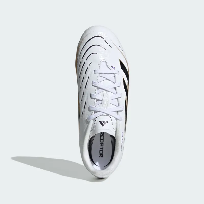 Der Unterschied zwischen dem Ziel, ein Tor zu schießen, und der Gewissheit, dass du es schaffst? Der adidas Predator Fußballschuh. Diese Ligaschuhe für Kinder und Teens verfügen ein Hybridfeel-Obermaterial mit einer 3D-Textur und griffigen Strikescale-Lamellen, die dir helfen, den Fußball zu kontrollieren. Und seine Controlplate Außensohle sorgt für Top-Performance auf festen Böden und Kunstrasen.