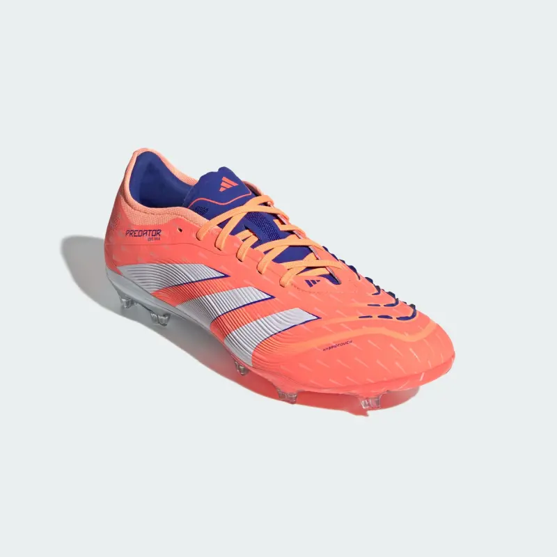 Der Unterschied zwischen dem Ziel, ein Tor zu schießen, und der Gewissheit, dass du es schaffst? Der adidas Predator Fußballschuh. Dieser Pro Fußballschuh hat ein flexibles HybridTouch-Obermaterial und griffige Strikeskin Gummilamellen, die dir bei jedem Schuss volle Ballkontrolle geben. Auf der Unterseite findest du eine durchgehende Controlplate Außensohle für Stabilität auf trockenem Rasen.
