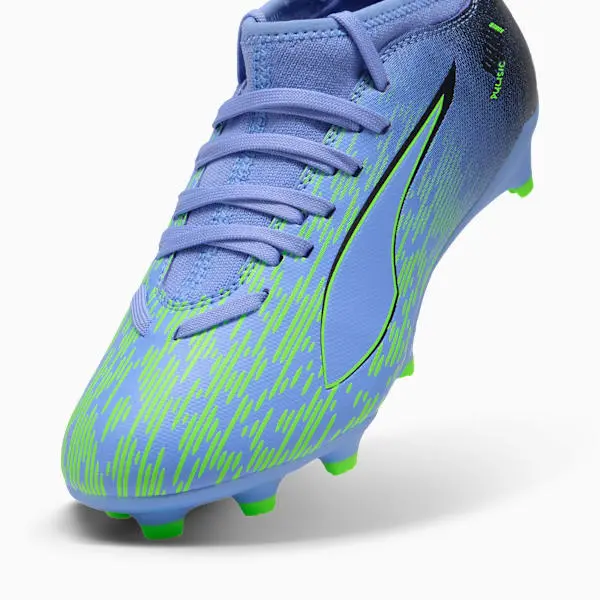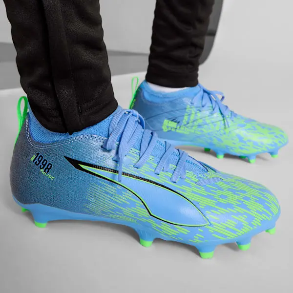 Wie schnell ist der ULTRA 5 MATCH? Anschnallen! Dieser ULTRA ist perfekt für aufstrebende Sprinter und kommt mit PUMAs brandneuer SPEEDSYSTEM-Außensohle und dem FastTrack-Stollendesign für explosive Traktion. Drei abgerundete Stollen an der Seite ermöglichen den Wechsel zwischen festem Untergrund und Kunstrasen. Egal wo du spielst, gib immer Vollgas!