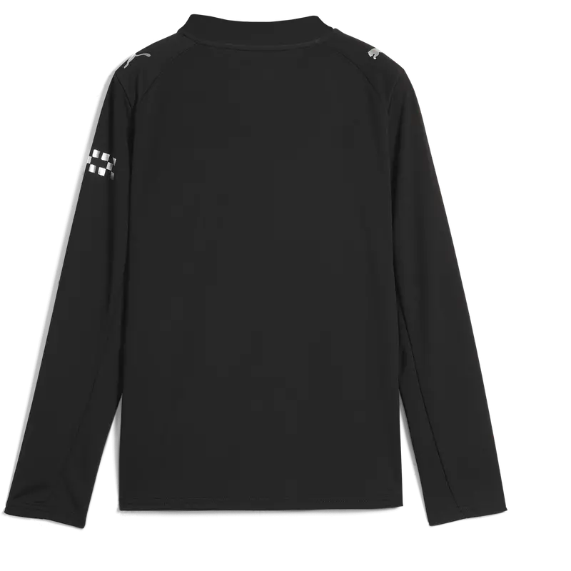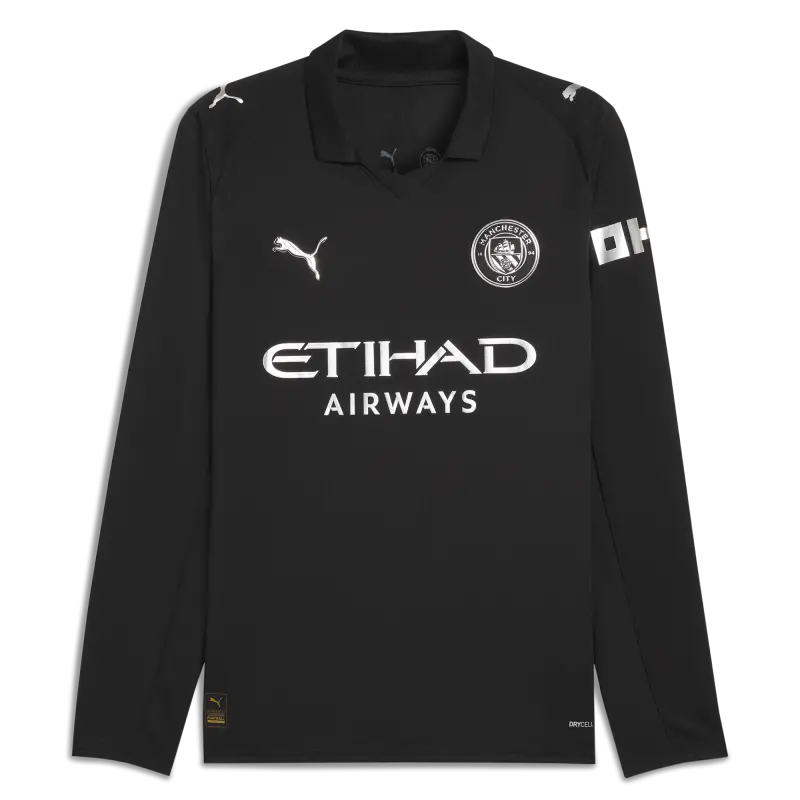 Das Manchester City Auswärtstrikot mit langen Ärmeln 2025/26 vereint auf eindrucksvolle Weise das reiche Erbe des Clubs mit moderner Leistung. Inspiriert von den Ursprüngen von Manchester City in Gorton, interpretiert das 25/26-Auswärtstrikot das erste bekannte Trikot des Clubs aus dem Jahr 1884 mit einem mutigen, komplett schwarzen Design und metallischen Details neu, die die Vergangenheit in die Gegenwart holen. Dieses Trikot ist eine Hommage an die ersten Cityzens. Für Komfort und Performance entwickelt, verfügt es über dryCELL-Schweißableitungstechnologie sowie atmungsaktive Mesh-Einsätze an Schultern, Seiten und unter den Armen, um dich kühl und trocken zu halten. Die reguläre Passform und langen Ärmel sorgen für ganztägigen Tragekomfort, während das offizielle Manchester City-Wappen und die PUMA Cat-Logos das Design stilvoll abrunden. Zeitlos, minimalistisch und kraftvoll – das ist das neue Auswärtstrikot von Manchester City.