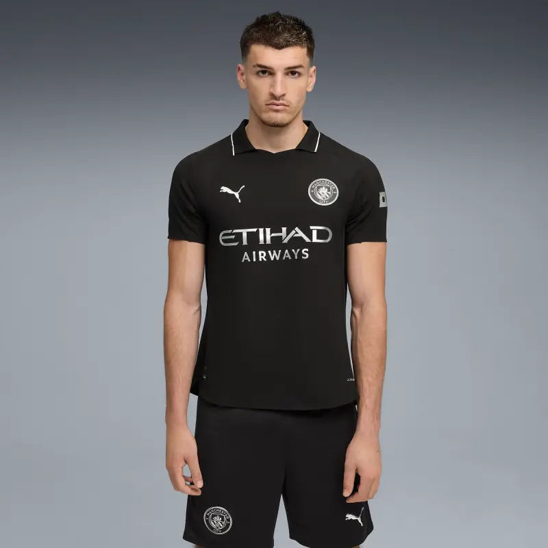 Feiere Tradition und Innovation mit dem Manchester City Authentic Auswärtstrikot 2025/26. Inspiriert von den Ursprüngen von Manchester City in Gorton, interpretiert das 25/26-Auswärtstrikot das erste bekannte Trikot des Vereins aus dem Jahr 1884 mit einem markanten schwarzen Design und metallischen Details neu, die Vergangenheit und Gegenwart verbinden. Eine Hommage an die ersten Cityzens – dieses Trikot markiert den Beginn eines neuen Kapitels: zeitlos, kraftvoll und historisch verwurzelt. Entwickelt für Höchstleistungen besteht das Slim-Fit-Trikot aus leichtem ULTRAWEAVE-Gewebe und verfügt über dryCELL-Schweißableitungstechnologie für kühlen, trockenen Tragekomfort. Mesh-Einsätze an Schultern, Seiten und unter den Armen erhöhen die Atmungsaktivität, während lasergeschnittene Details auf der Brust eine hochwertige Note verleihen. Abgerundet mit dem Manchester City-Wappen, PUMA Cat-Logos und einem Authentic Licensed Product-Label mit 3D-Wärmetransfer-Mirage-Effekt. Geliefert in einer Premium-Geschenkbox, edel verpackt in Seidenpapier – ein Must-Have für jeden echten Cityzen.