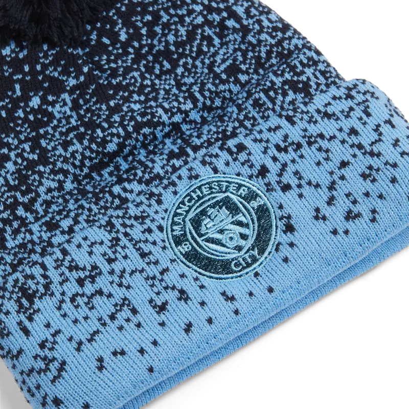 Die Manchester City Core Speckle Bobble Hat bringt Wärme und Stil in jedes Spieltagsoutfit, mit gesprenkeltem Strickdesign und gemütlicher Passform – stolz hergestellt in Manchester für echte Cityzens.