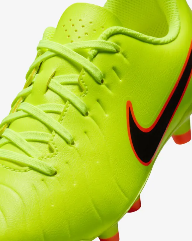 Sogar Legenden entwickeln sich weiter. Egal, ob du gerade anfängst oder einfach nur zum Spaß spielen willst – mit der neuesten Version dieser Club Schuhe kommst du auf dem Platz, ohne Kompromisse in Sachen Qualität einzugehen. Das Kunstleder passt sich deinem Fuß an und dehnt sich nicht zu weit, um bessere Kontrolle zu gewährleisten. Der Legend 10 ist noch leichter und schnittiger als die bisherigen Tiempo-Modelle. Er eignet sich für jede Position auf dem Spielfeld, egal ob du einen präzisen Pass durch die Verteidigung spielst oder zurückläufst, um einen Gegenangriff abzuwehren.