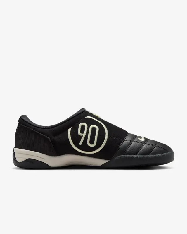 Dieser authentische Fußball-Style mit originalem, gestepptem Obermaterial und asymmetrischer Schnürung gibt dir nostalgische 2000er Vibes. Diese Version kombiniert weiches Wildleder mit Kunstleder. Wir haben die Stollen gegen eine flache, straßentaugliche Gummisohle ausgetauscht.