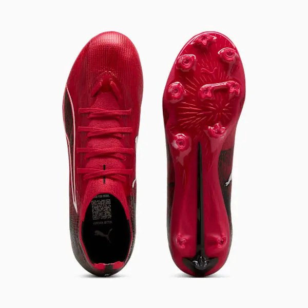 How fast is the ULTRA 6? Buckle up. Perfect for rising speedsters, this version of the ULTRA features PUMA’s all-new SPEEDSYSTEM outsole and FastTrax stud design for explosive traction. Three rounded studs on the lateral side let you switch between firm ground and artificial grass. Nothing extra. Everything ULTRA.